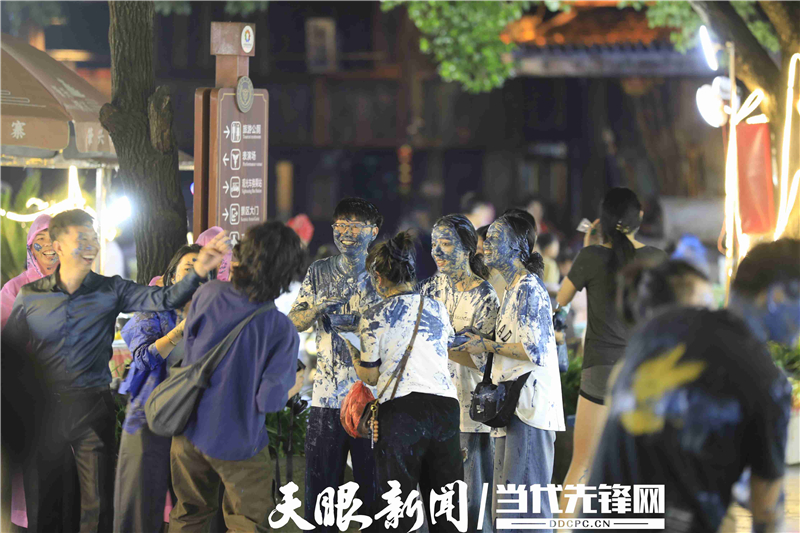 丢卣卣、讨乌米、打花脸,谷雨节最“闹”的环节当属夜晚主街谷雨狂欢环节,“脸越花福越浓”的情绪表达让这场谷雨节的热闹直冲天灵盖,游客与侗族同胞互相涂抹,欢声笑语中,千年习俗化作零距离的快乐。