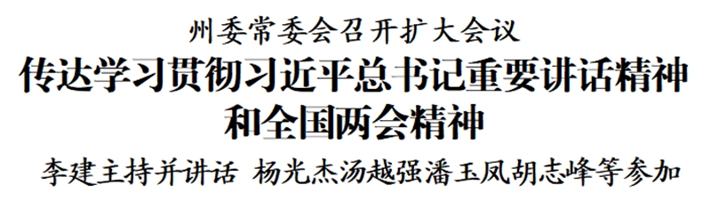 3月14日,州委常委会召开扩大会议,传达学习习近平总书记在全国两会期间重要讲话精神和全国两会精神,贯彻落实全省领导干部会议精神,研究部署农村改革、新时代审判、公务接待管理等工作。