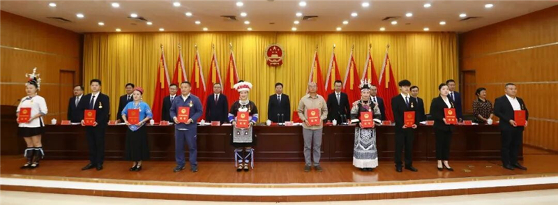 州委和州政府决定授予99人“黔东南州劳动模范”称号、49人“黔东南州先进工作者”称号。在热烈的掌声中,州领导为受到表彰的代表颁发荣誉证书。受表彰代表宣读倡议书。
