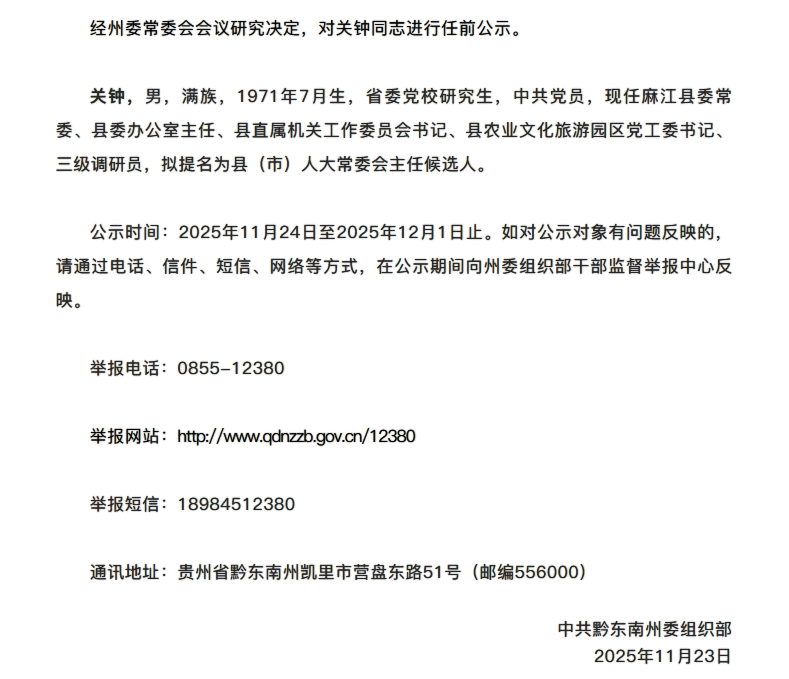 州管干部任前公示